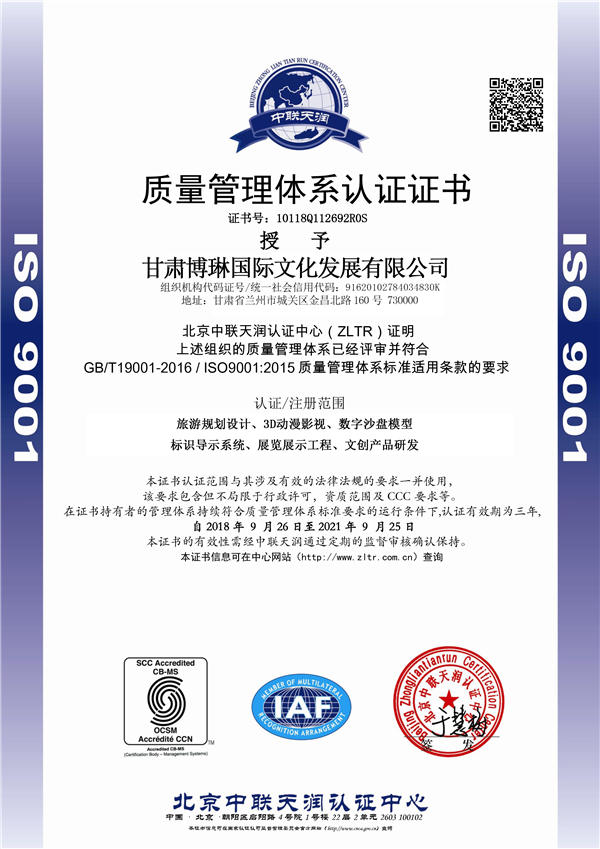 質量管理體系認證證書